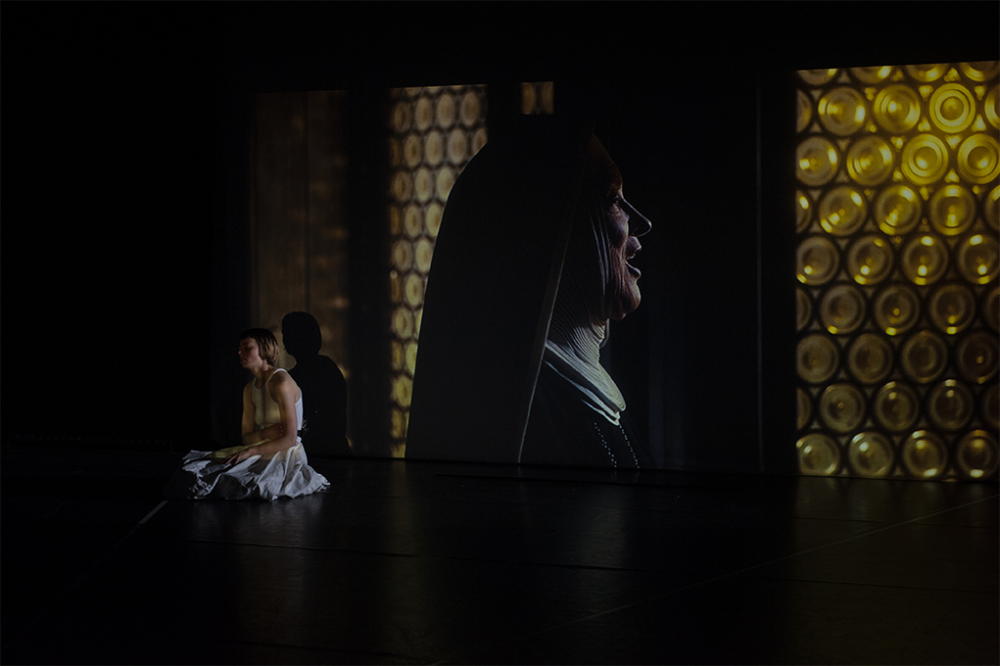 De Sont of Mjoezik is een duet tussen een jonge vrouw en het witte doek, tussen een aspirant-actrice en de personages die haar vormden. Balancerend op de rand van een hoopvolle jeugd en een veelbelovende toekomst probeert ze te zijn wat ze ooit had ingebeeld te zullen worden. Maar terwijl ze zichzelf regisseert tot perfectie, verandert haar lichaam. Ze groeit, maar het witte doek groeit niet mee.